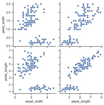 sns.pairplot(iris, x_vars=["sepal_width", "sepal_length"], y_vars=["petal_width", "petal_length"]) plt.show()'Python' 카테고리의 다른 글